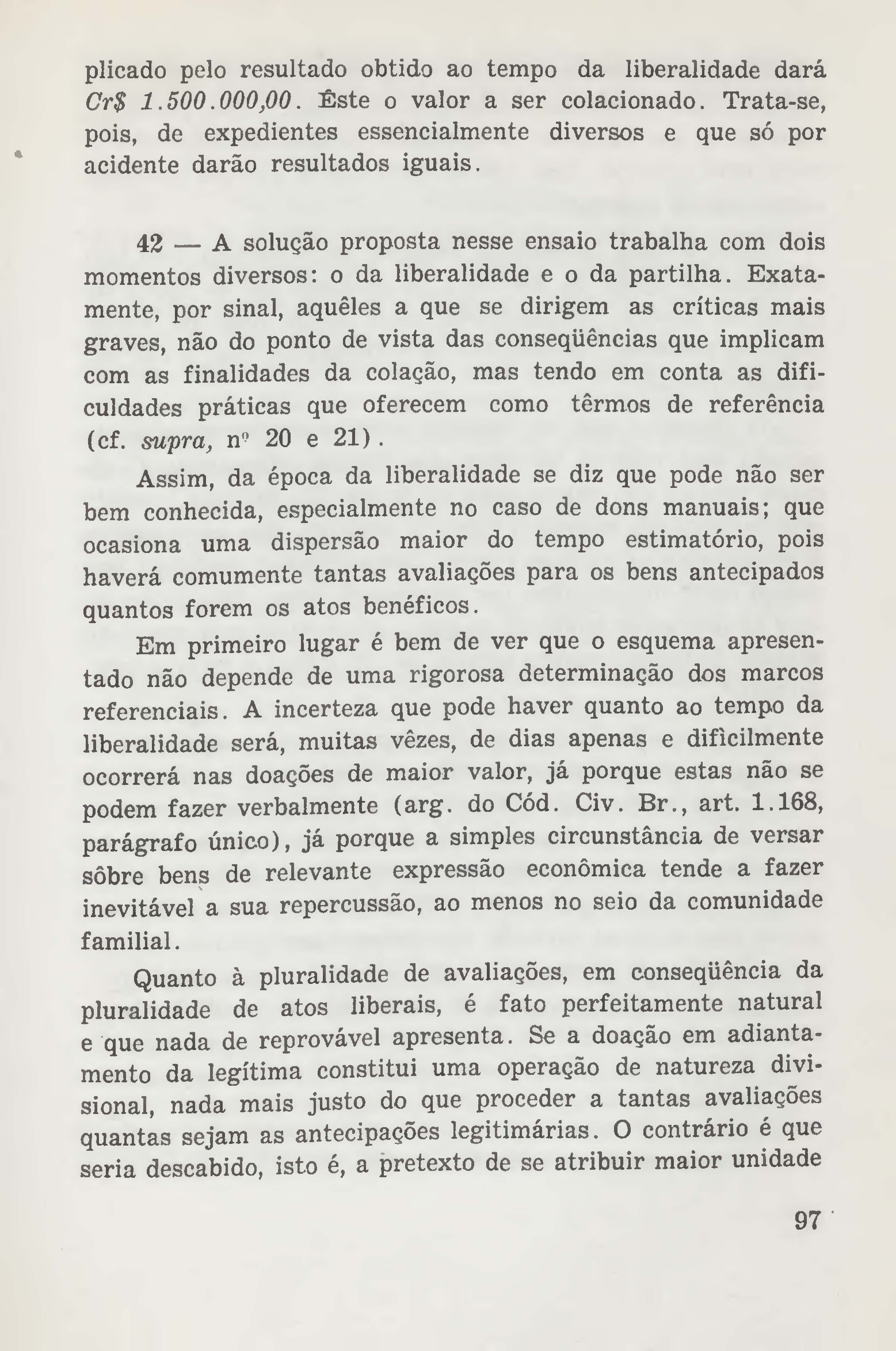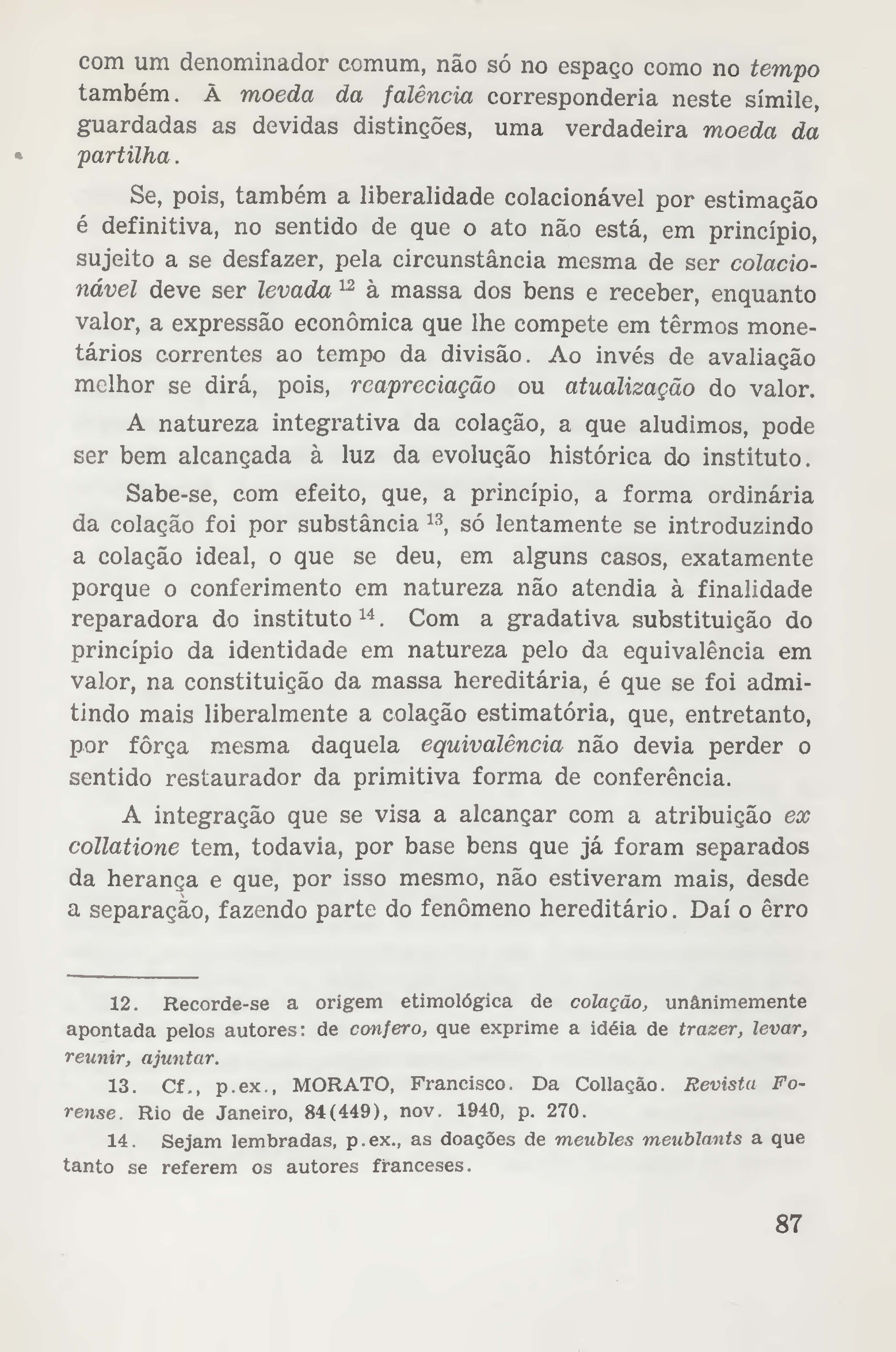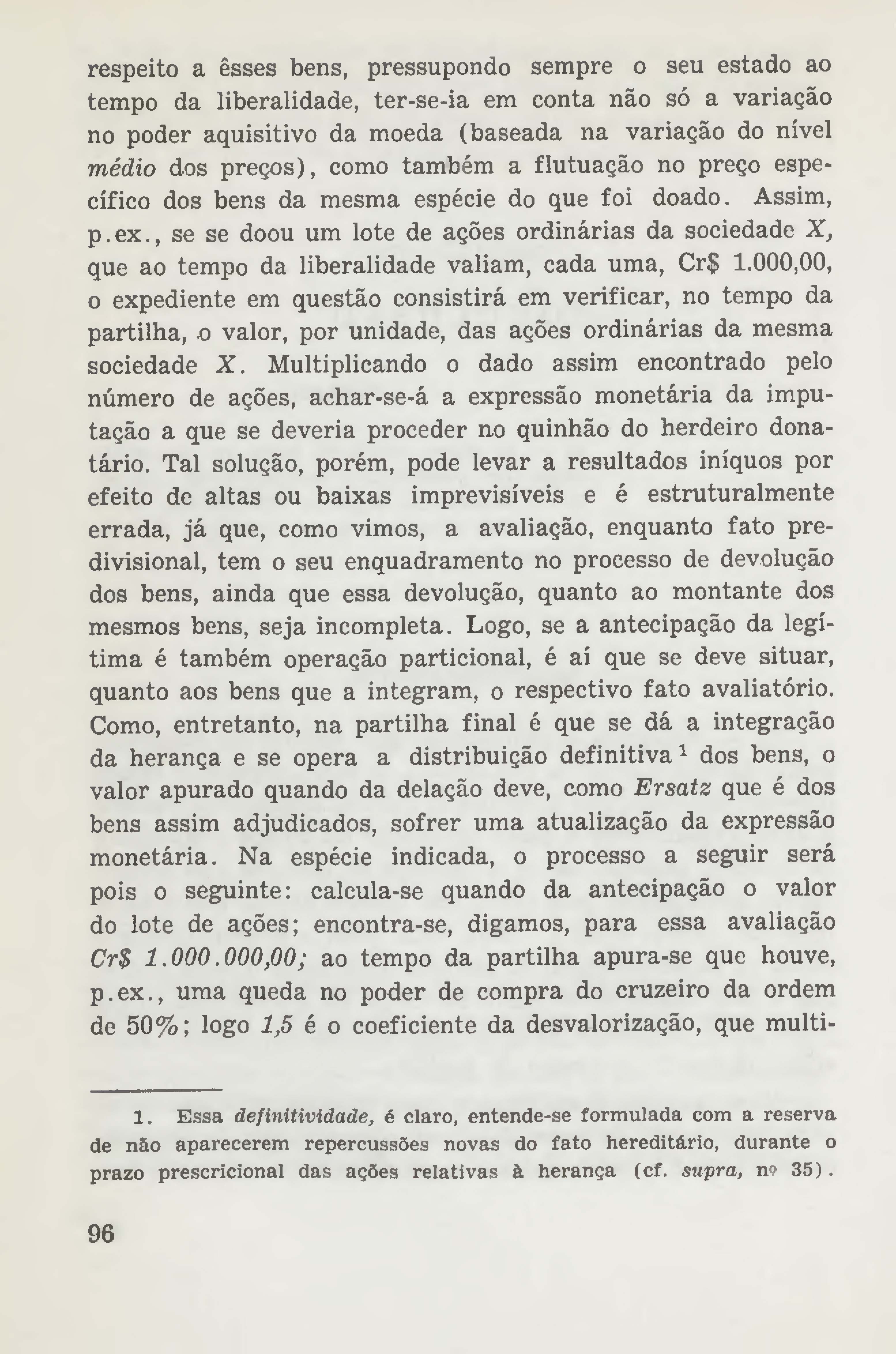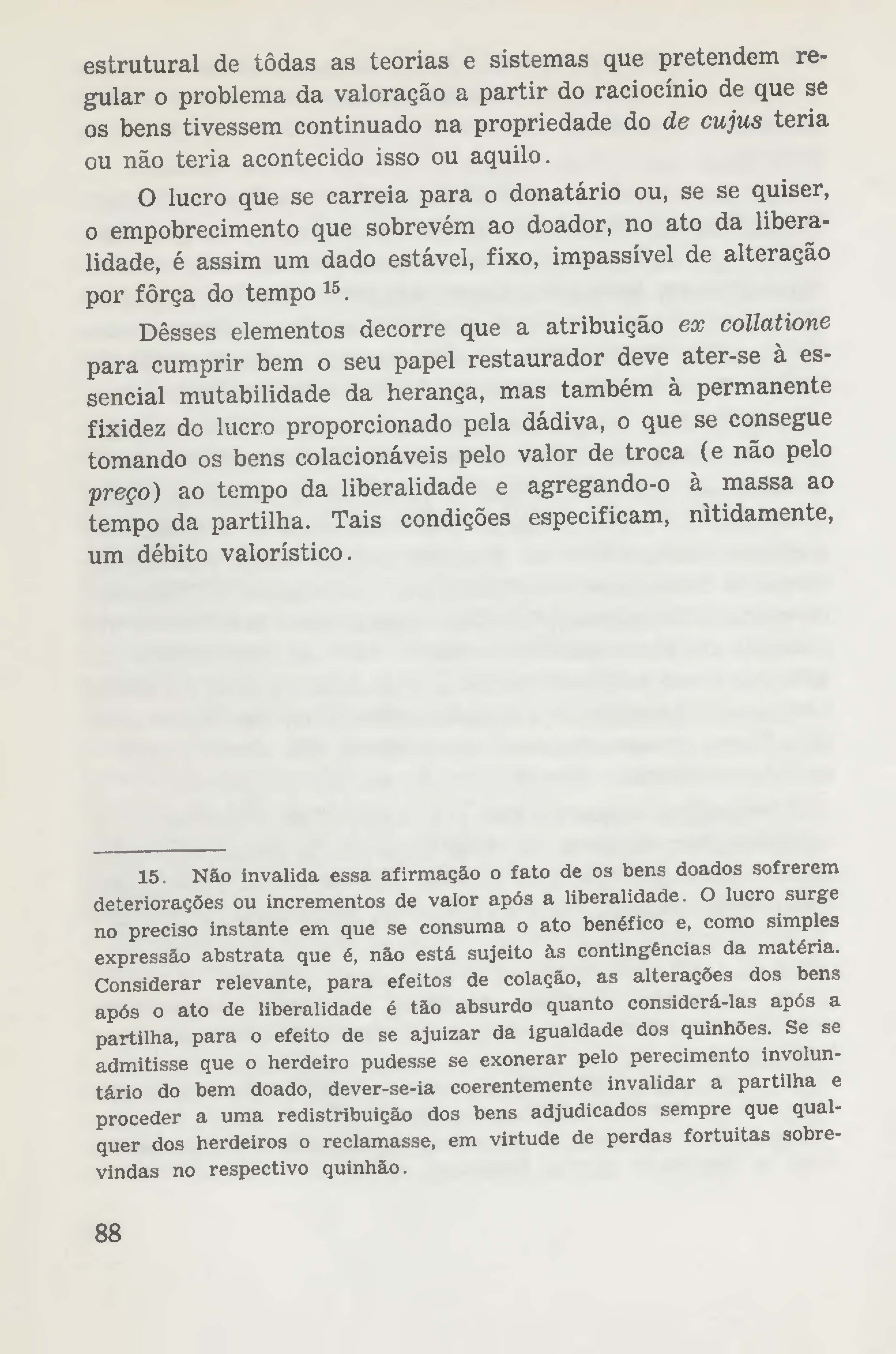 Contribuição à teoria do valor dos bens na colação hereditária