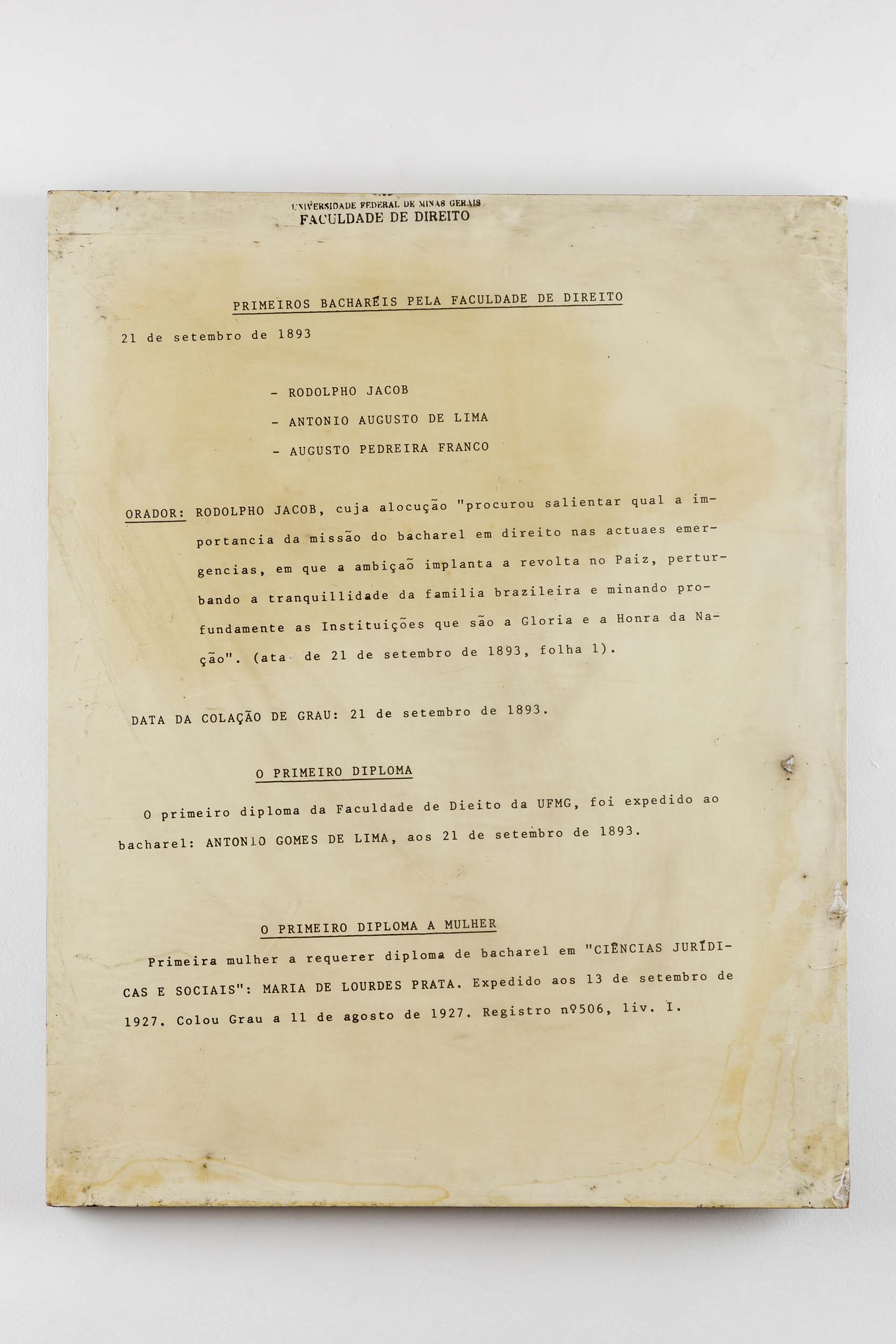 Voltar Primeiros bacharéis pela Faculdade de Direito Primeiros bacharéis pela Faculdade de Direito 21 de setembro de 1893 Quadro Documento 02